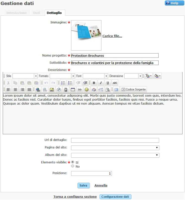 Ogni immagine del plug-in ha dimensione 600x400 pixel, per ottenere uan grafica come quella proposta consigliamo di inserire le immagini tutte della stessa dimensione, altrimenti si possono riscontrare problemi di impaginazione grafica.