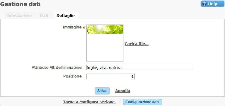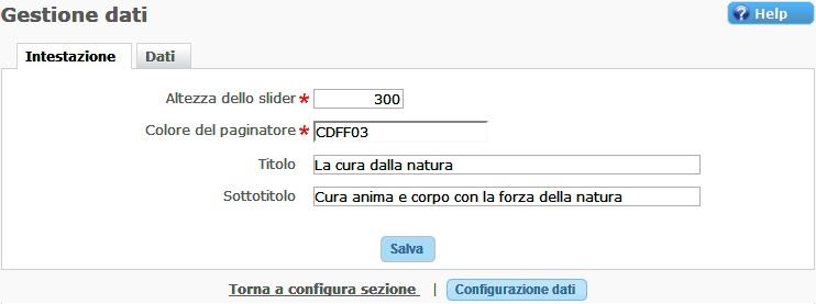 La seguente immagine mostra la configurazione dei parametri relativi a un elemento dello slider.