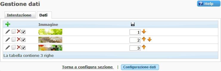 La seguente immagine mostra la lista degli elementi presenti nello slider.