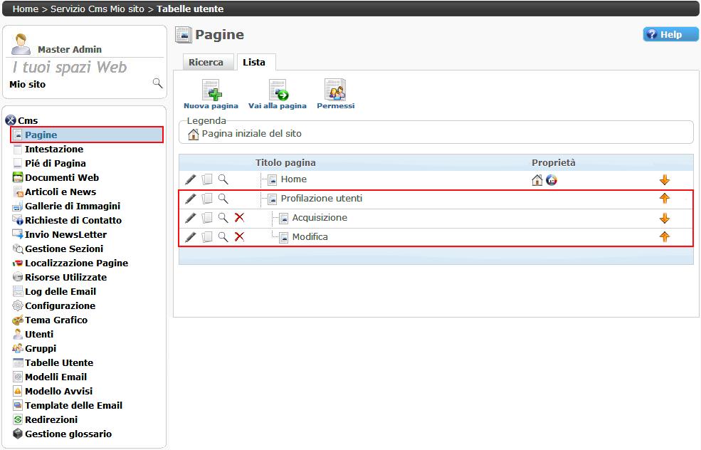 Quinto passo: configuriamo la sezione di pagina Modifica.