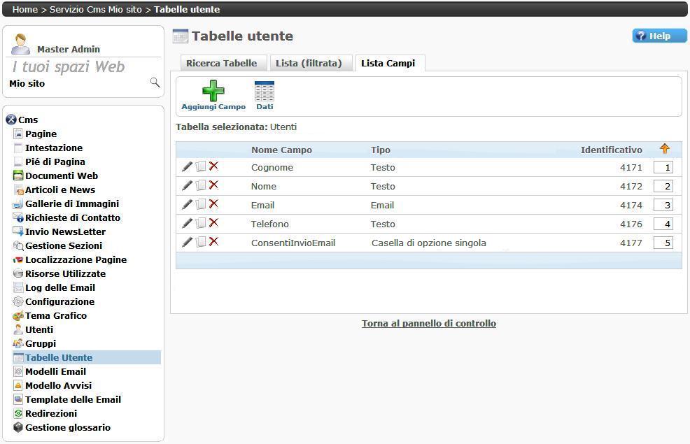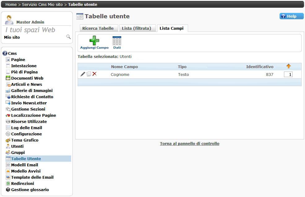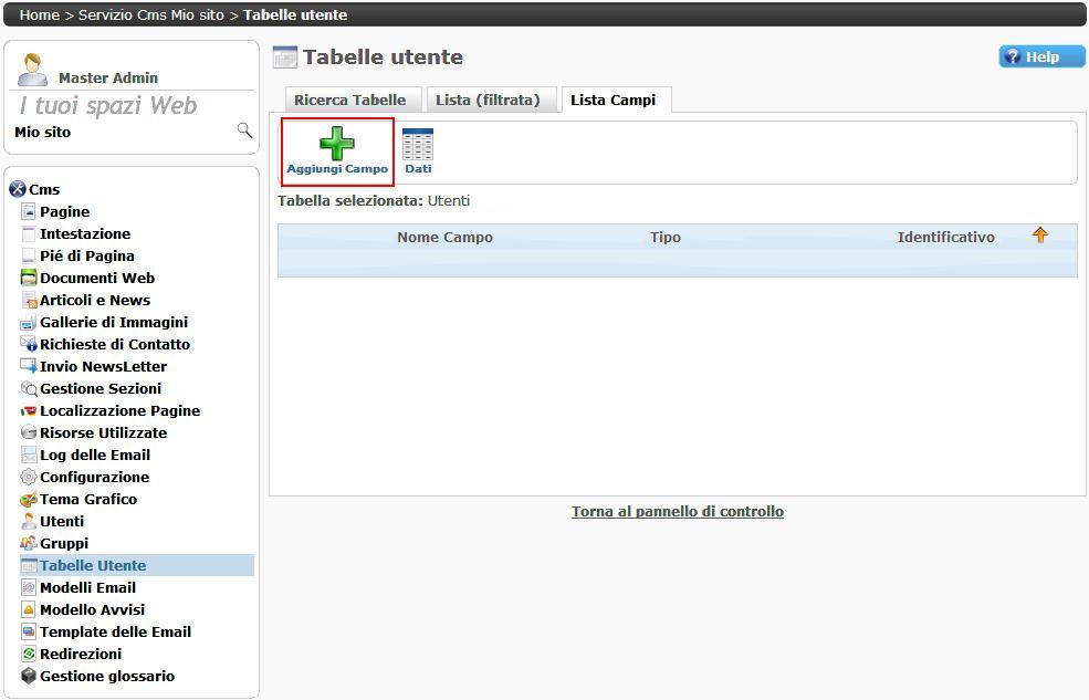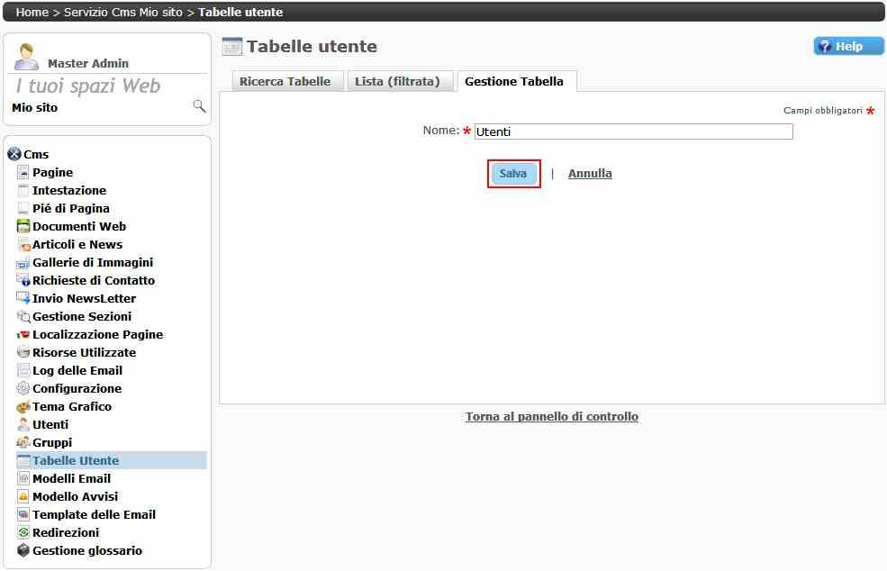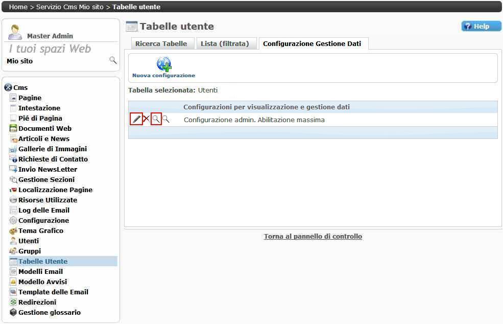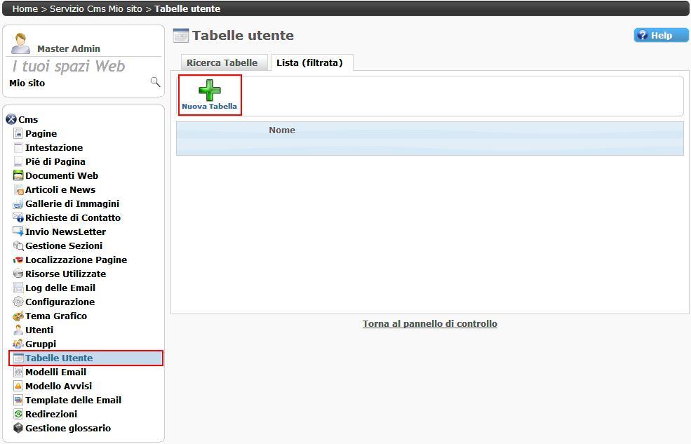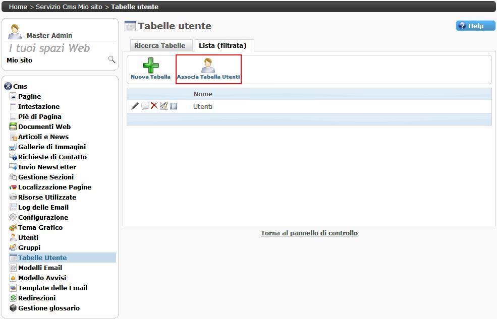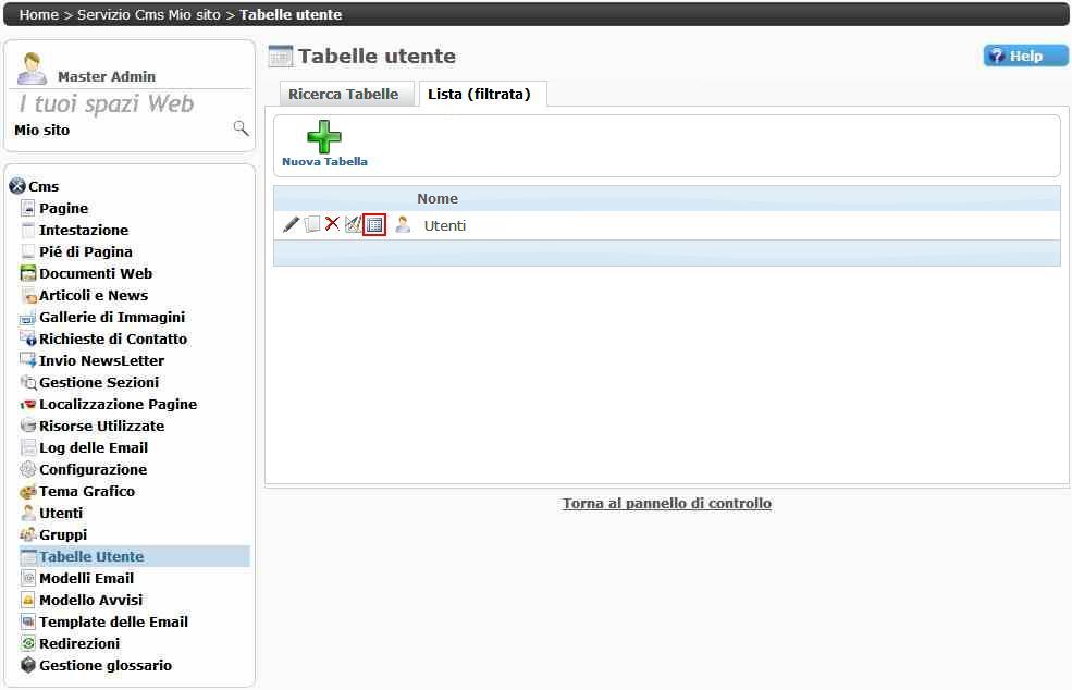 Dal pannello di controllo cliccare su Tabelle Utente.