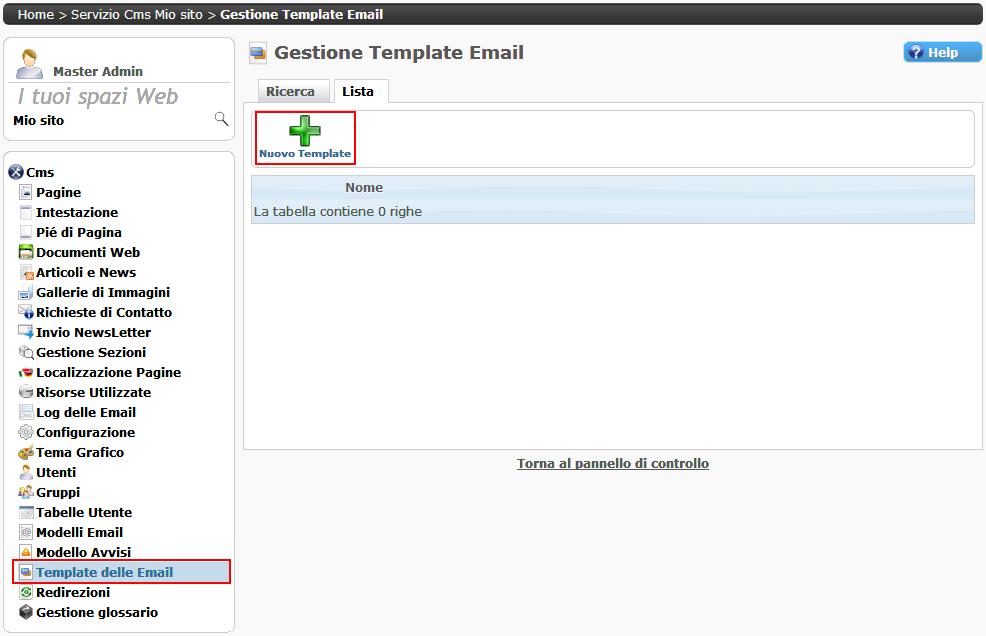 Clicchiamo su Nuovo Template per aggiungerne uno nuovo.
