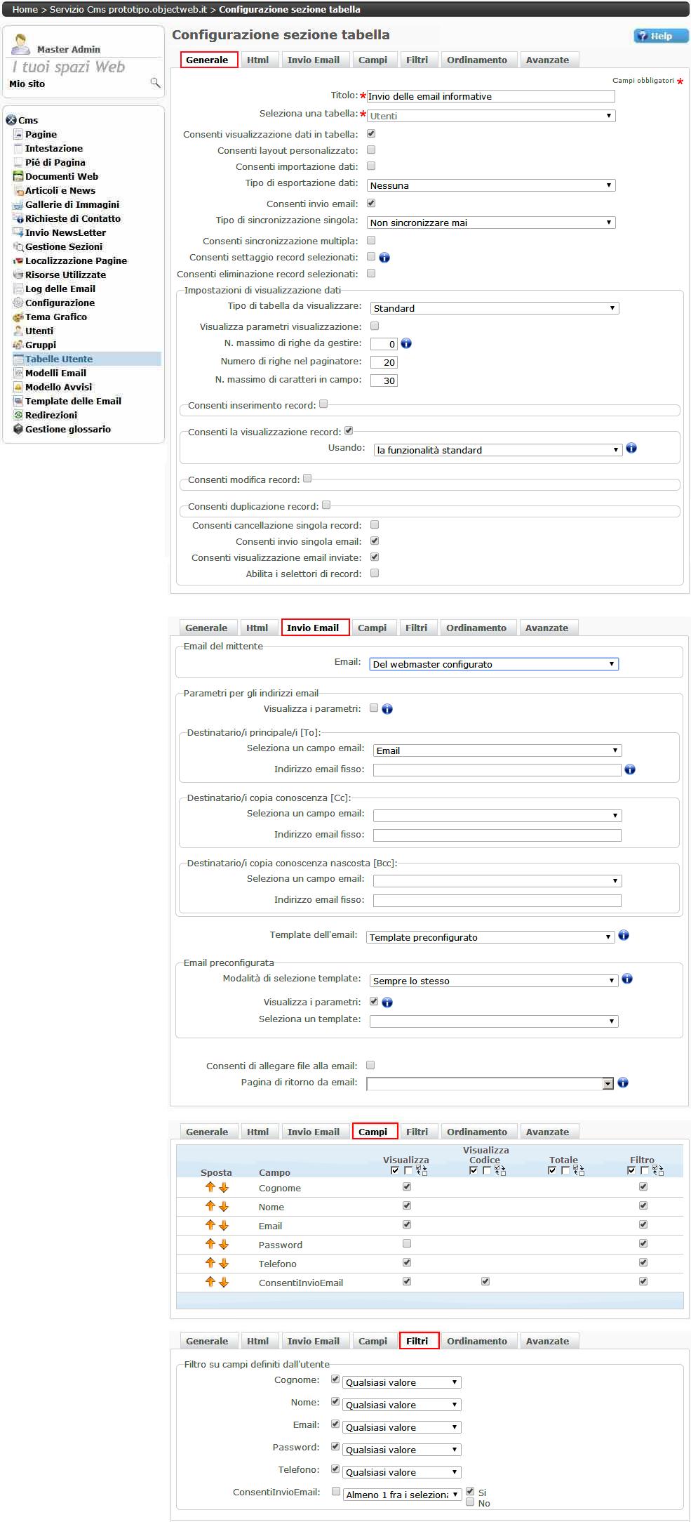 Quello che ci apprestiamo a configurare si limita a visualizzare in griglia i soli utenti che anno acconsentito all'invio delle email in modo da poter effettuare, ogni qualvolta lo desideriamo, operazioni di mailing agli utenti che hanno aderito all'invio di informative.