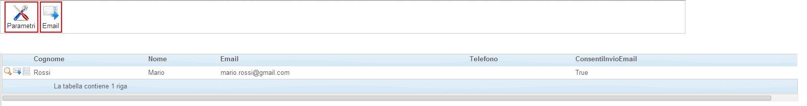 Cliccando sull'icona Email viene inviata una email a tutti i contatti filtrati.
