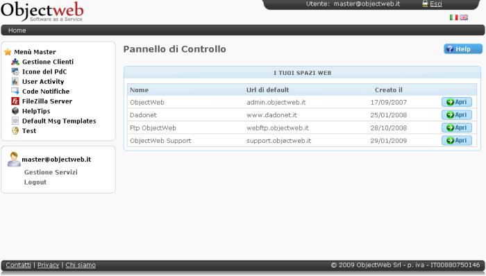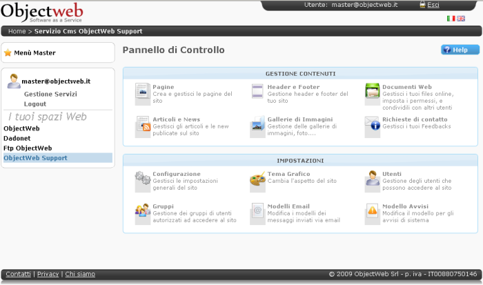 Pagina principale di amministrazione sito.