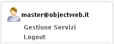 Informazioni utente, bottone di logout e bottone di accesso a gestione servizi.