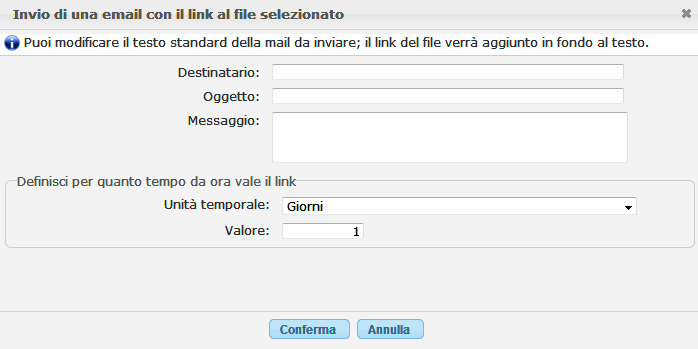 La finestra di dialogo presenta i campi in cui indicare l'indirizzo email del